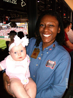 Molly did SOOOOOOOooooooooo well during our car rides to/from St. Louis. Seriously! She was a STAAAAAAAARRRR! She didn't fuss much, didn't cry a lot, and made Mommy and Daddy very happy with her manners in public! Yes, she smiled at almost EVERYONE! We always get so many complimnets on how happy Molly is. I'm like, "ooooh, she's happy NOW but if you could see her at home.....YIKES" but I don't say that of course.